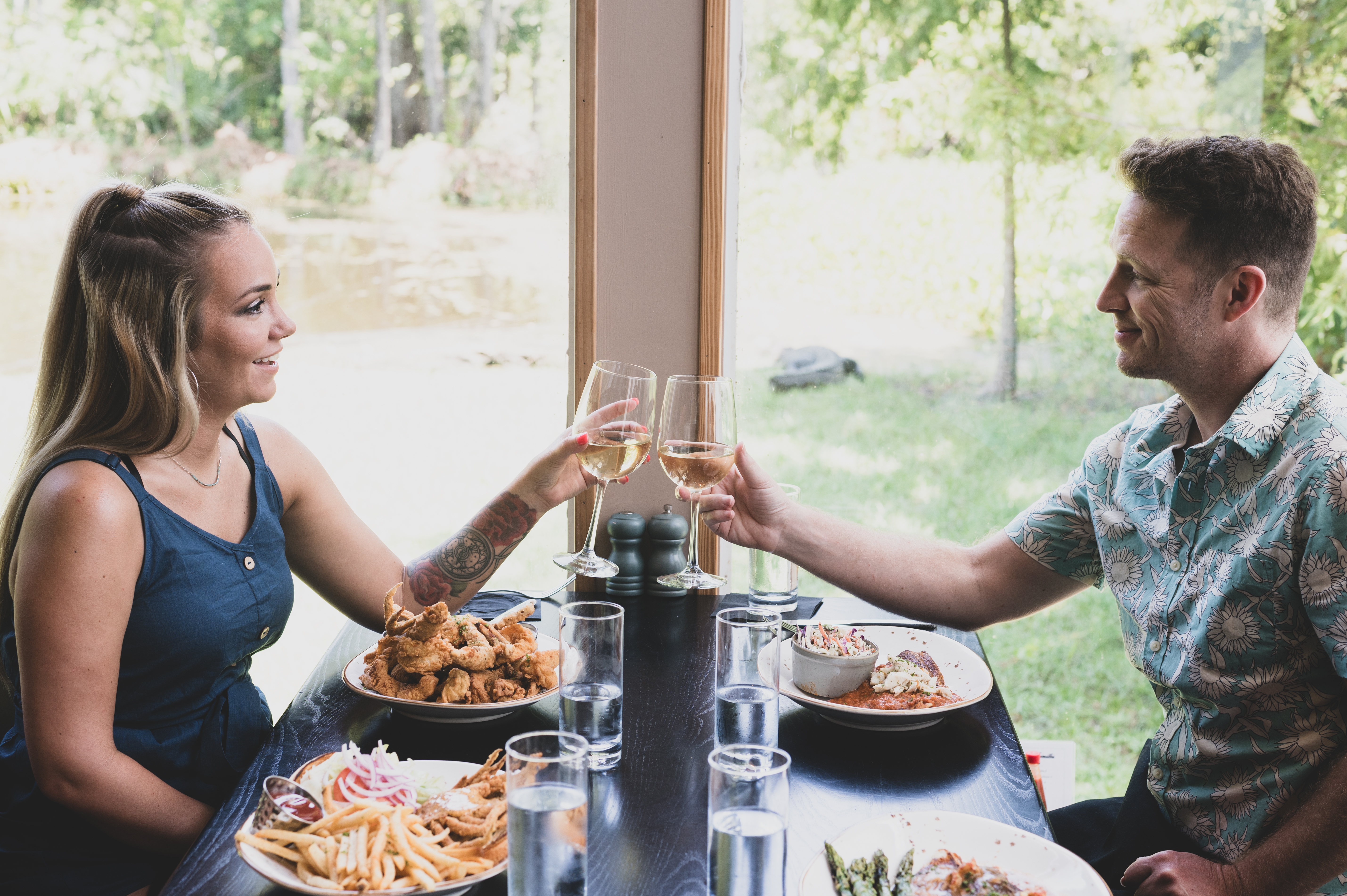 When you need a break from the sun, stop at Restaurant des Familles for lunch. Nestled along the Bayou des Familles, you’ll not only take in favorites like seafood gumbo and étouffée, but can even go bold and try the alligator stuffed mushrooms. Speaking of gators, floor-to-ceiling glass inside the restaurant offers stunning views of nature, with alligators frequently making an appearance right outside your windows!