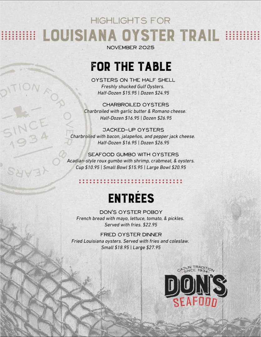 Stop by and enjoy Louisiana oysters of your choice.