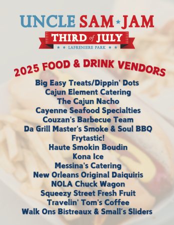 Come hungry. Local food vendors will be on-site with classic festival fare and Louisiana favorites. For a full list of our 2025 food vendors, please visit https://www.unclesamjamjeffers...