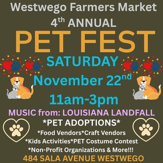 Join the city of Westwego for their 4th Annual Pet Festival.