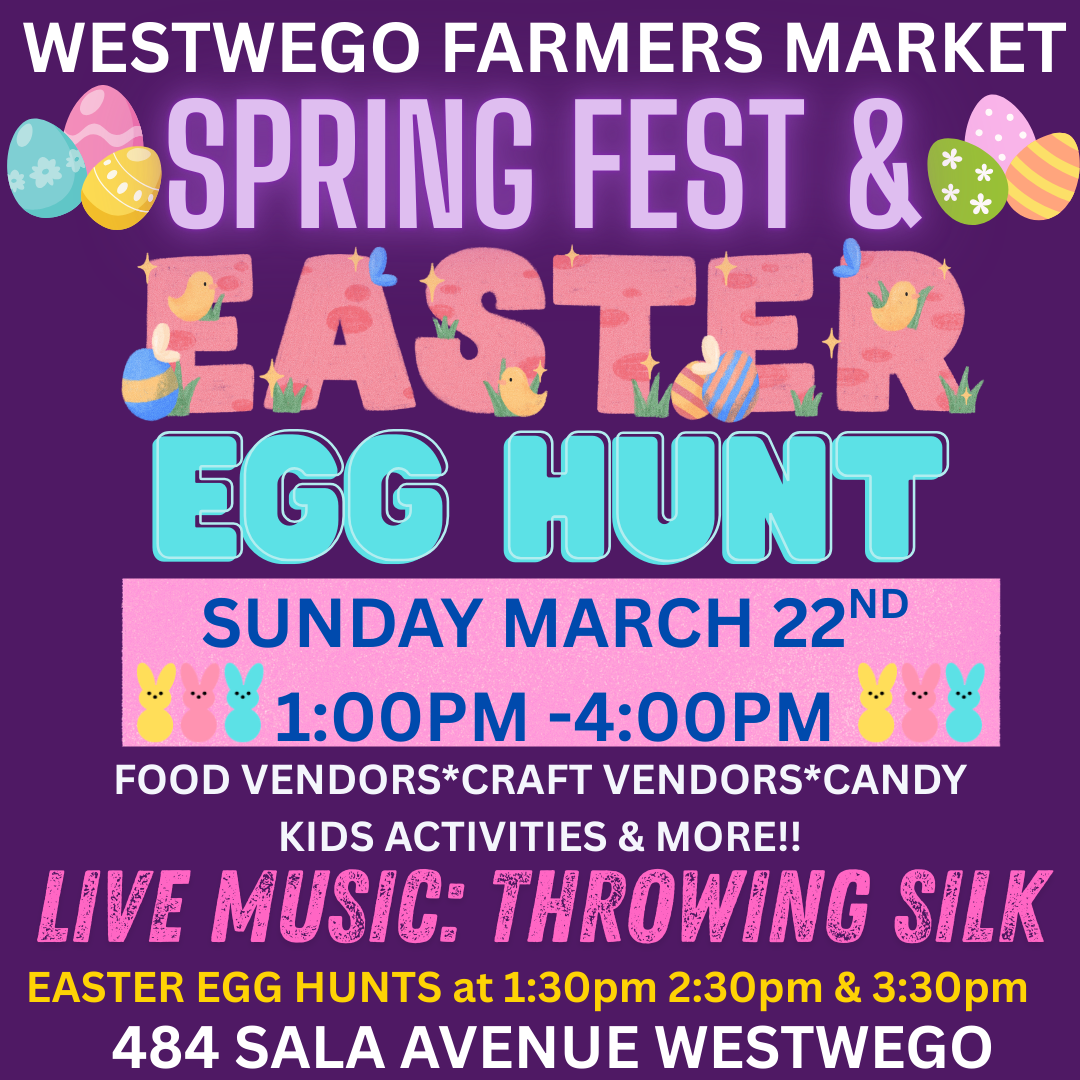 Mark your calendars for Sunday, March 22 for the Westwego Fisheries & Farmers Market Annual Spring Fest & Easter Egg Hunt!